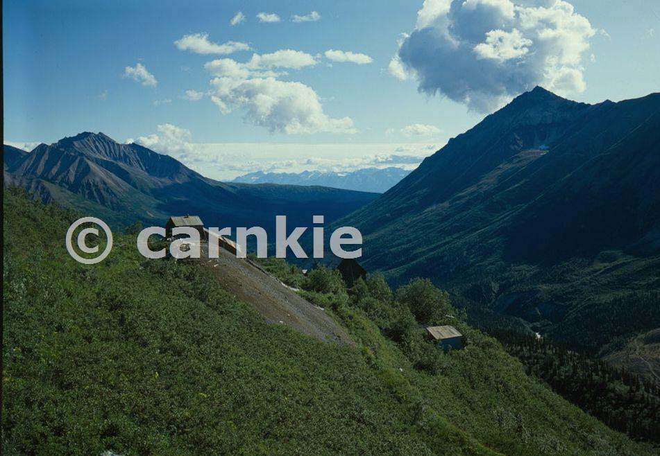 PANORAMA VIEW FROM UPPER CAMP ABOVE BUNKHOUSE. Courtesy Library of Congress, Prints & Photographs Division, HAER, Reproduction number HAER AK,20-MCAR.V,1-7