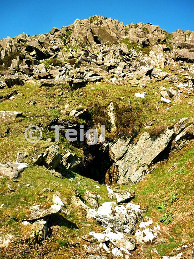 There are several run-in adits to the east of the Crimea pass road. This one is at the top and looks the least promising...when you reach it, it is actually open. There's a collapsed/filled shaft directly above.