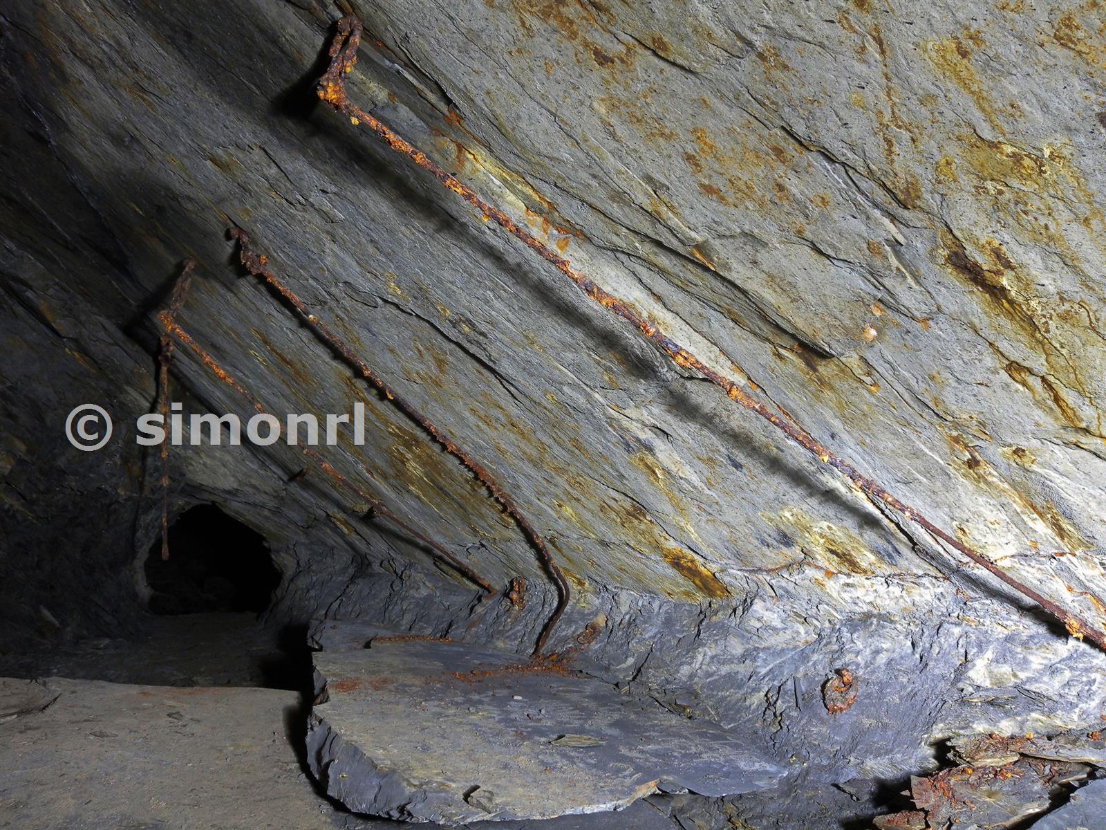 Support for never-completed bridge C Floor old vein Cwmorthin Slate Mine January 2014