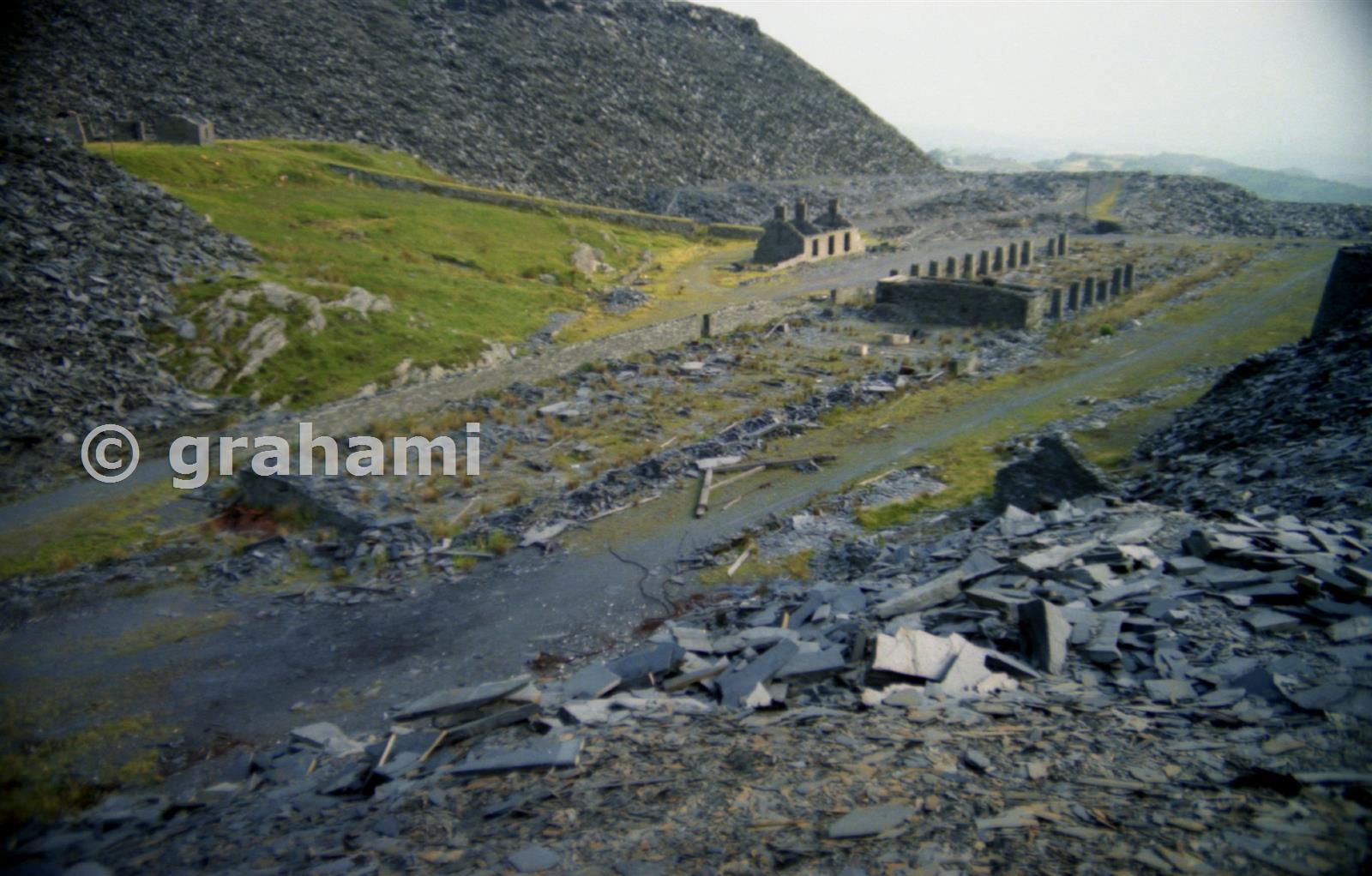 Viewed from Floor B - the wheelpit is obvious in the middle, with the office ruins behind. In the distance is the drumhouse of the DIffwys/Votty Incline to the FR.