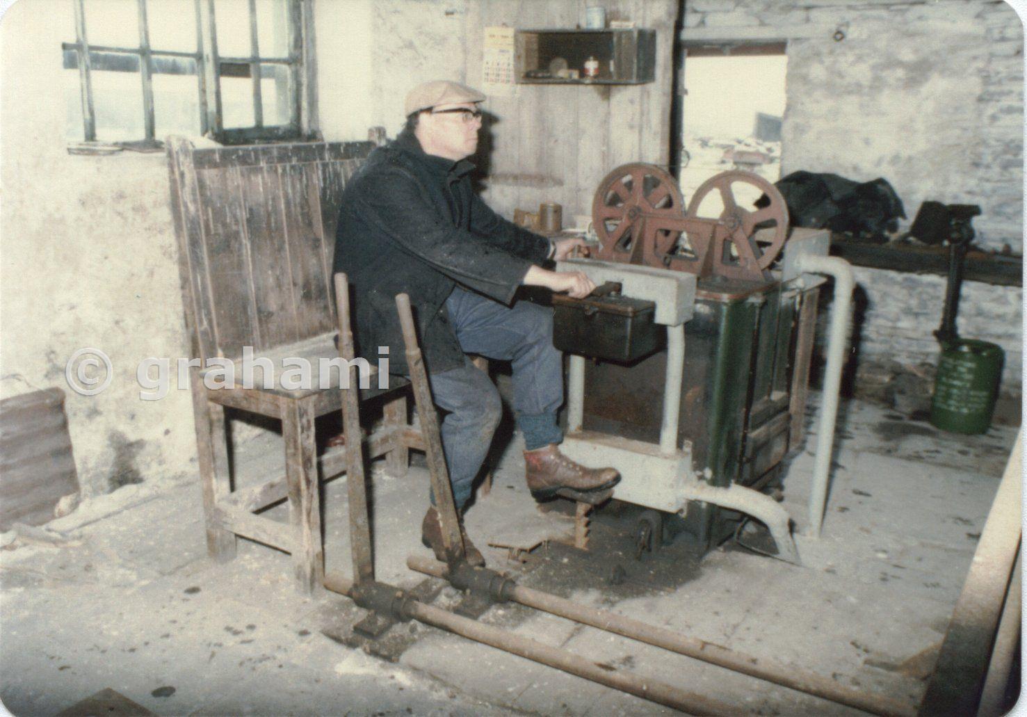 The late Rodney Weaver posing as cableway driver from a different angle. The box with the wheels on the top is the liquid resistance controller.