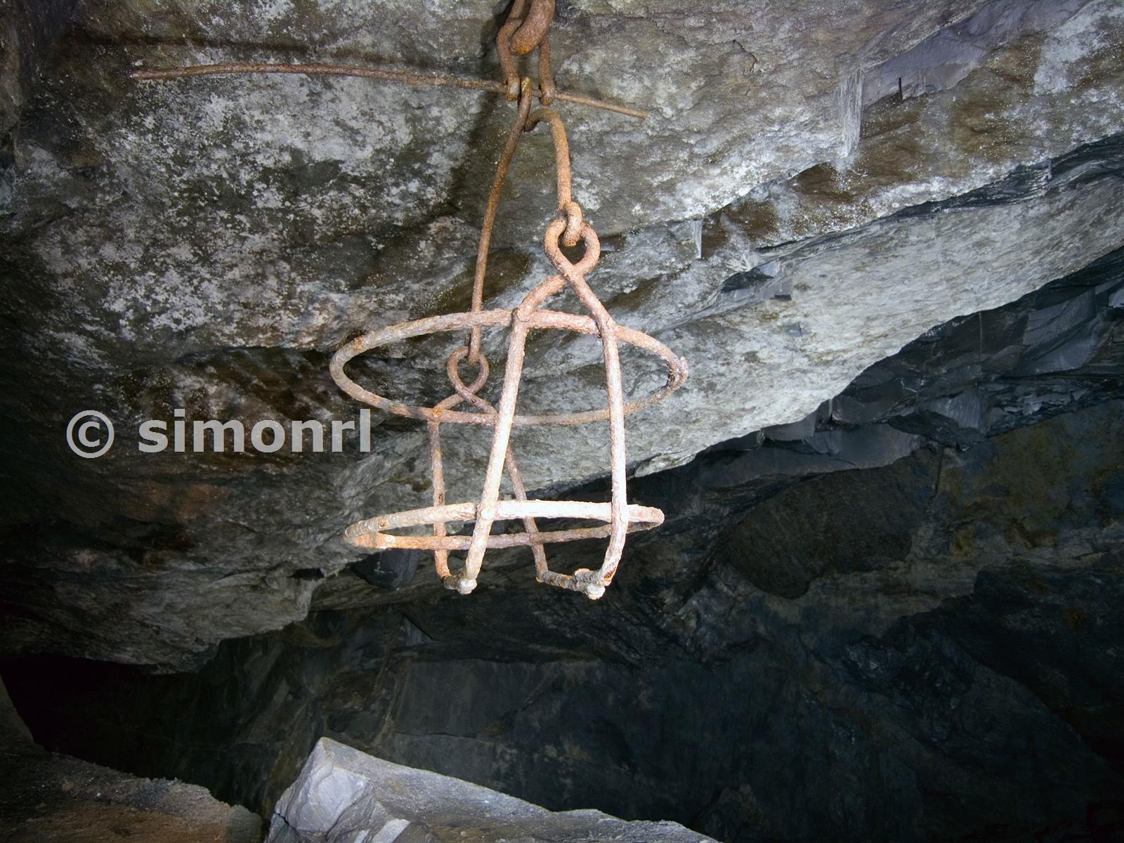 Cage, use unknown (theorised for lifting either waste or a man to check shafts), level 15c chamber 5c looking up chamber 12c to level 15c All locations worked out from survey in Slates from Abergynolwyn, courtesy of Thorpey Bryn Eglwys 11/05/2009