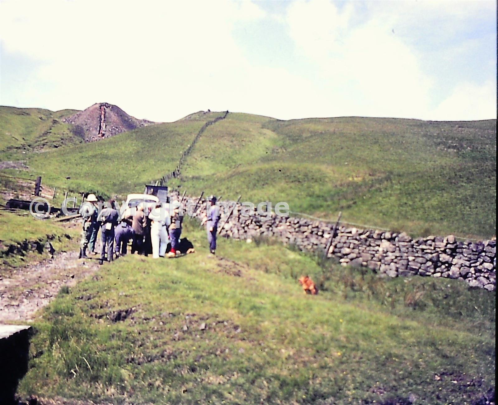 Mine tip in the background (doesn''t seem to have altered much - see current album pic by sparty_lea from 2008) Group of NCMRS/PDMHS backs, possibly MS in the white boilersuit, HGM (probably) with the red socks, perhaps CMcC on the right, maybe Jake the Lab on far right.