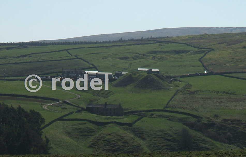Craigs level tips (centre) with the workings of the old Barbary lead mine in the valley below.