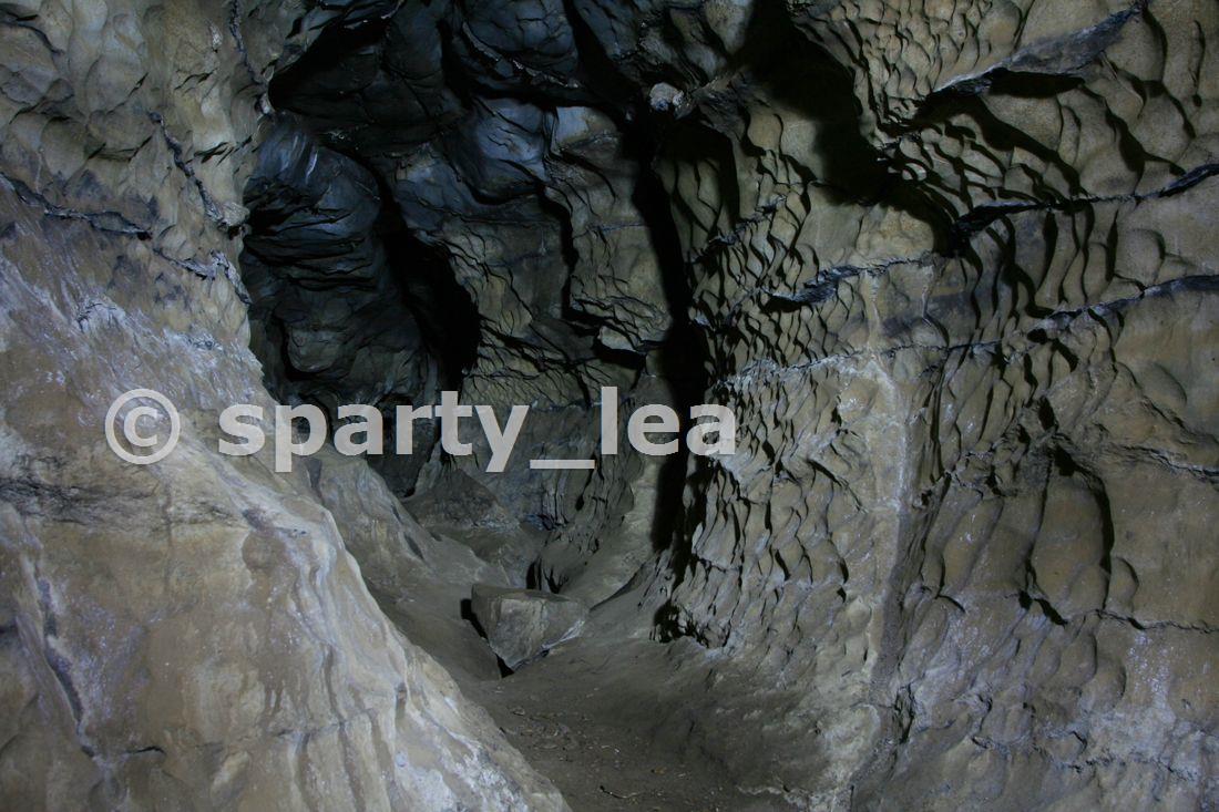 A low entrance leads to a small chamber with 'cave paintings' from which walking size passage goes in two directions, sadly both soon break out into quarry though the exits are choked.