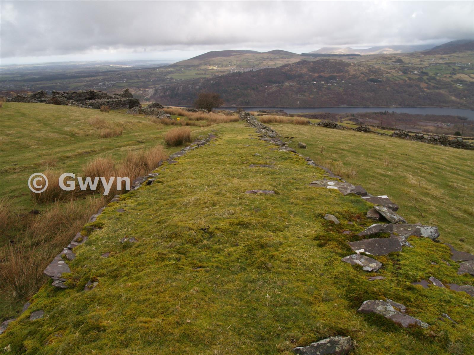 Landscape view looking N.E. down the remains of the Ffridd incline from the top drum house.