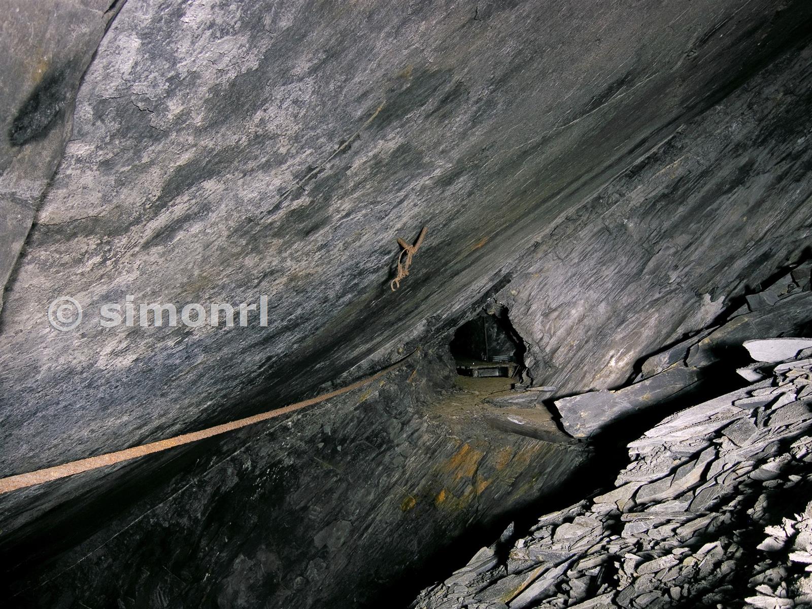 Chamber 1 East, C floor, old vein Cwmorthin slate quarry July 2009