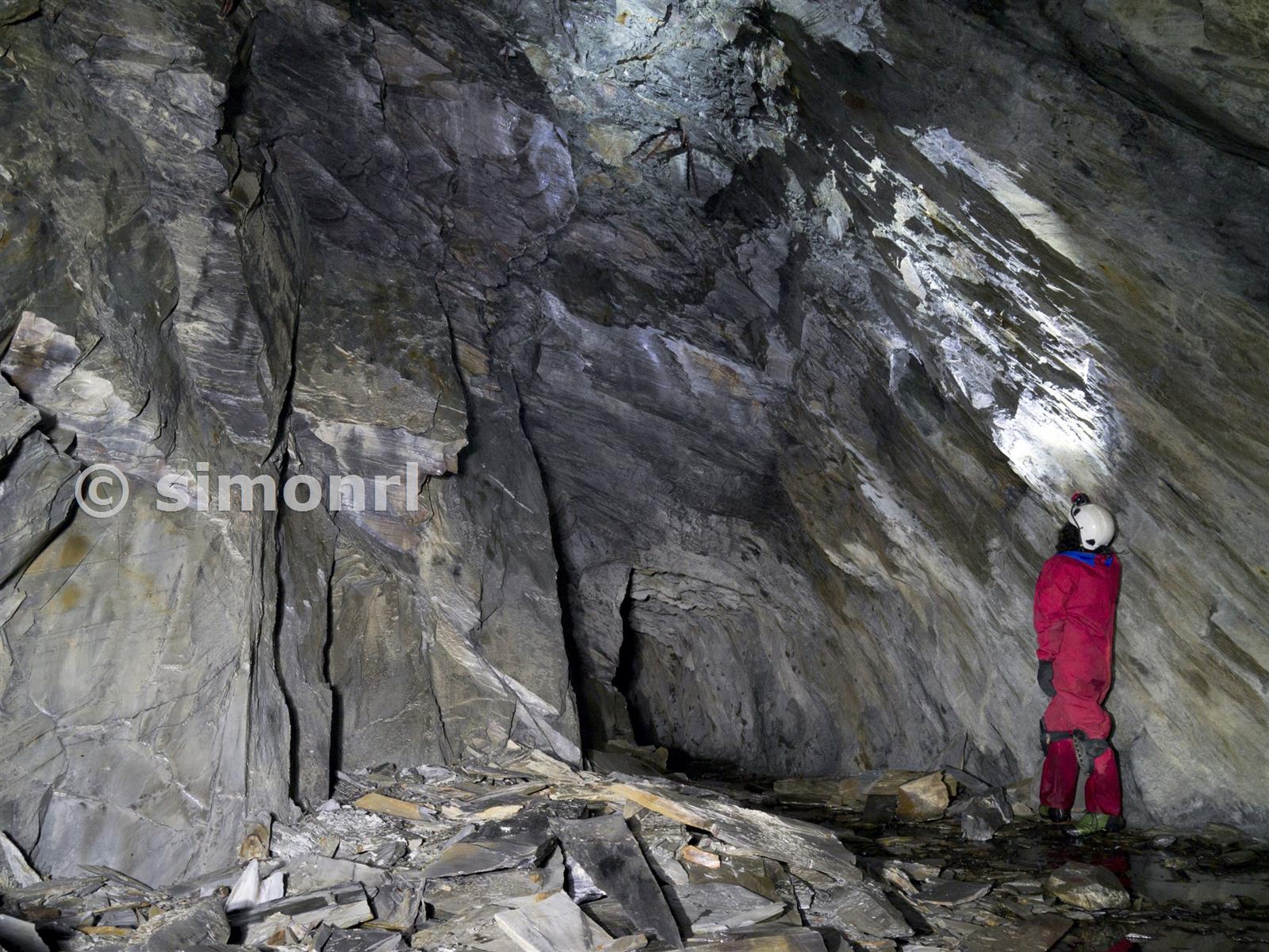 Chamber midway along lower level Hafod Uchaf Slate Quarry May 2014