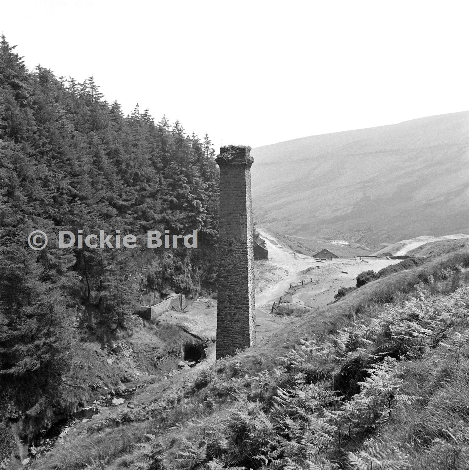 This mine was the scene of a bad mining tragedy in 1897. The main shaft, is located within the walled enclosure to the left of the stack, while the streamway is conducted under the site by means of the tunnel visible in the middle distance.