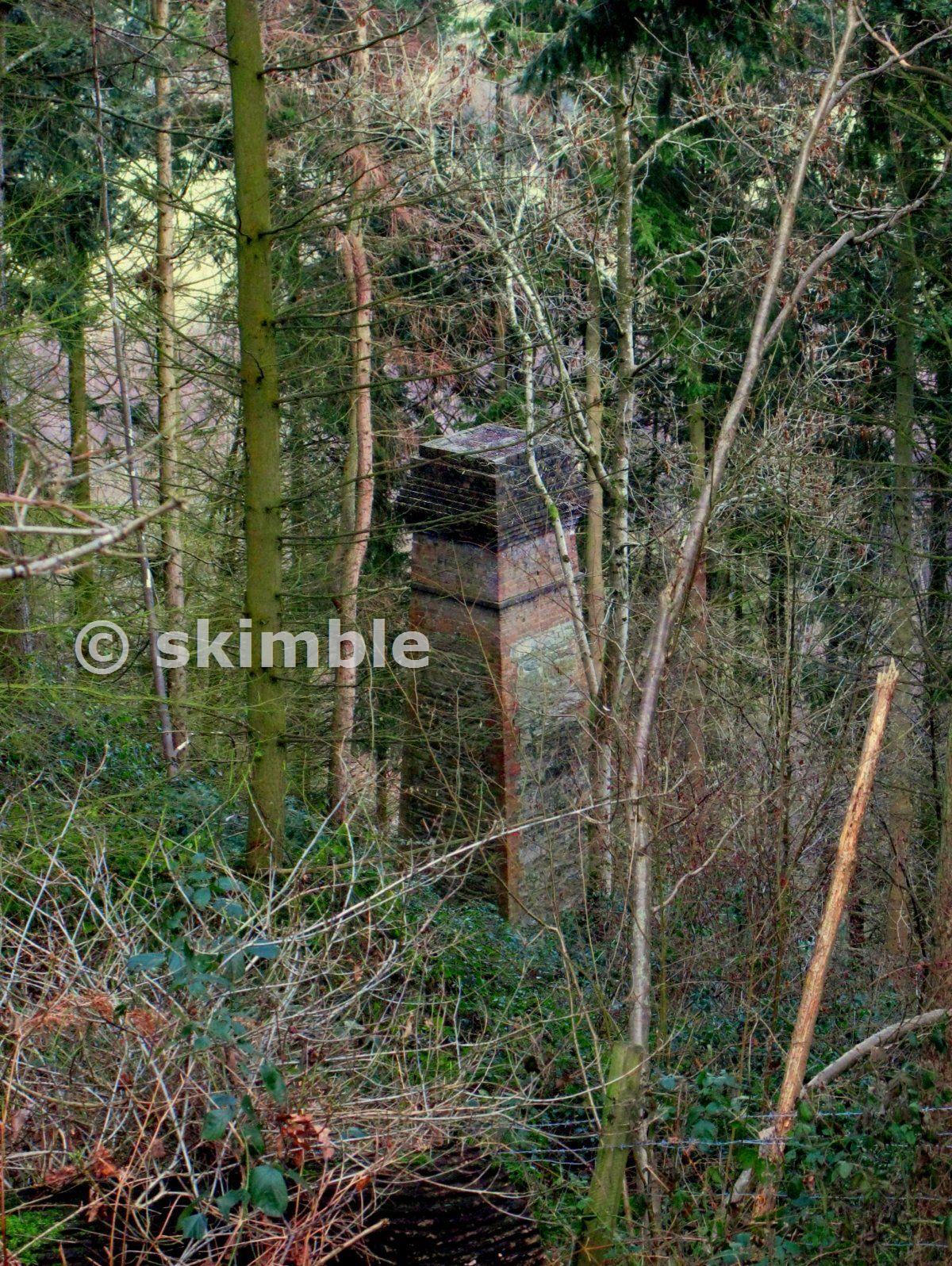 The chimney is situated high on the hillside near the upper workings, but was constructed to serve the lower workings via a long flue. The hillside is now choked with brambles. 23/01/2010