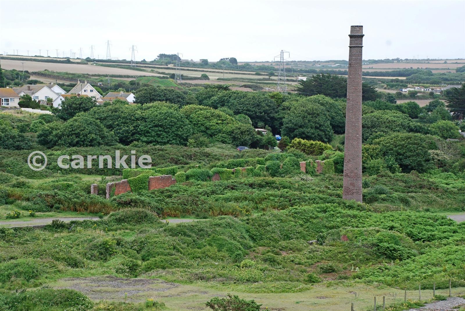 The Chimney Stack, although partially stripped of its special acid-resistant bricks, was renovated in November 1998. A 60" pumping engine was on the King’s Shaft, which lies in the gorse thicket to the left of the Chimney Stack.