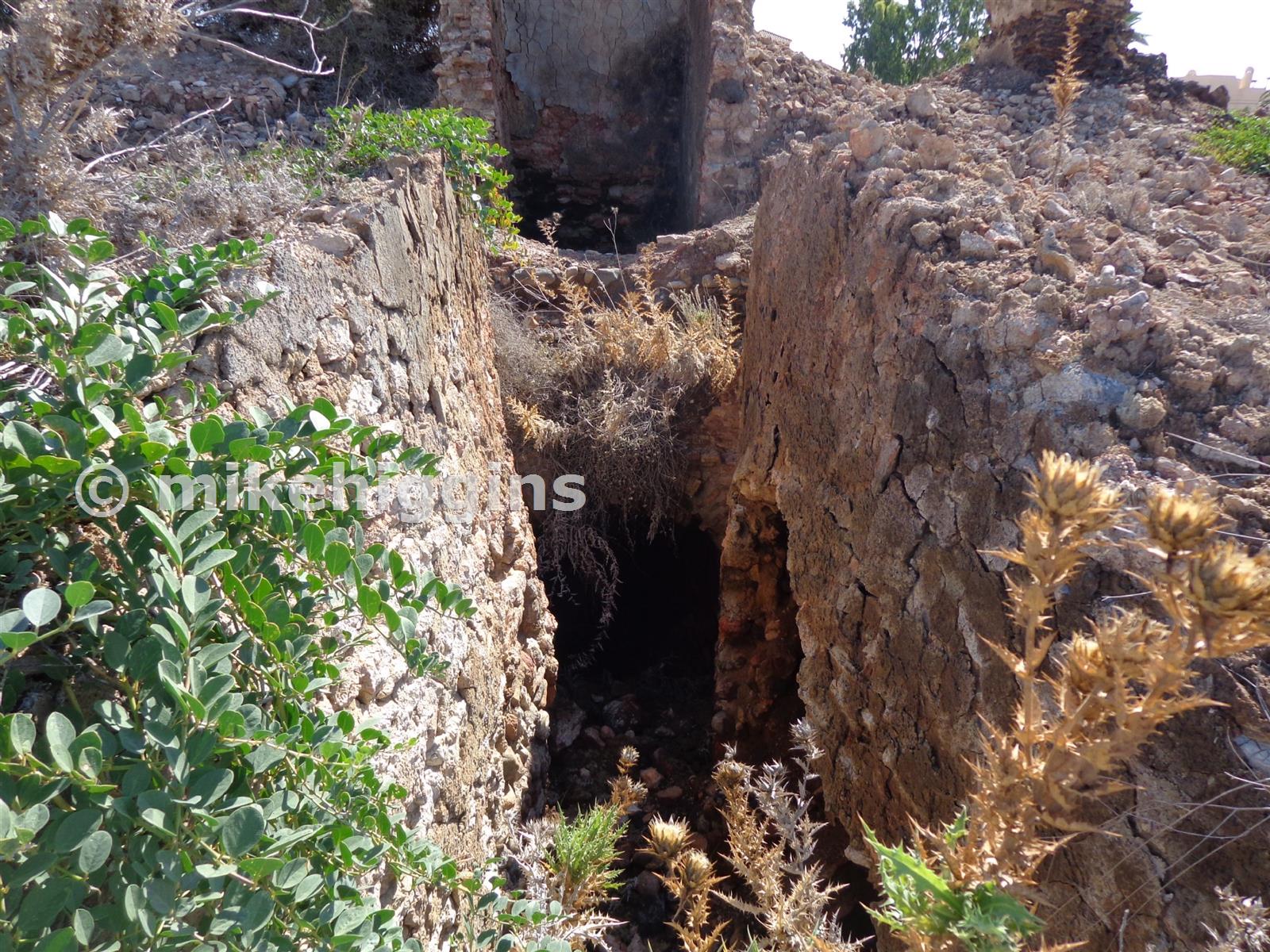 In the centre of the very ruinous buildings near the road is what appears to be the base of a large chimney with a flue entering from the north several feet below the present ground surface and possibly one from the east at a higher level