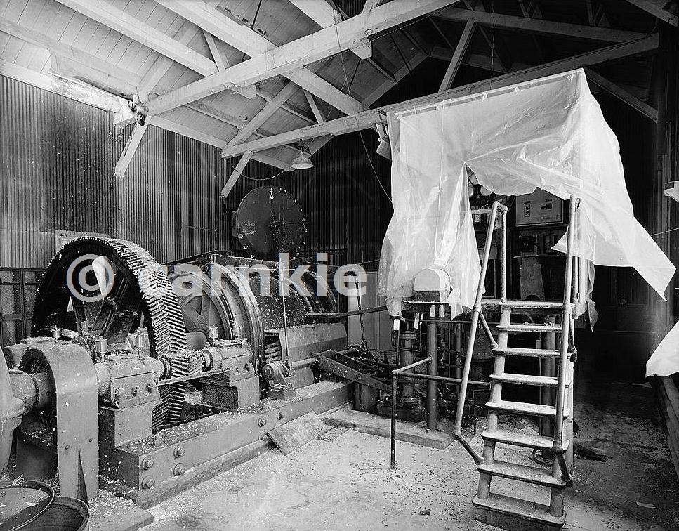 CHIPPY HOIST AT ANSELMO MINEYARD, LOOKING SOUTHWEST. THE HOIST IS A NORDBERG HOIST WITH A WESTINGHOUSE MOTOR. Courtesy Library of Congress, Prints & Photographs Division, HAER , Reproduction number HAER MONT,47-BUT.V,1-A-20