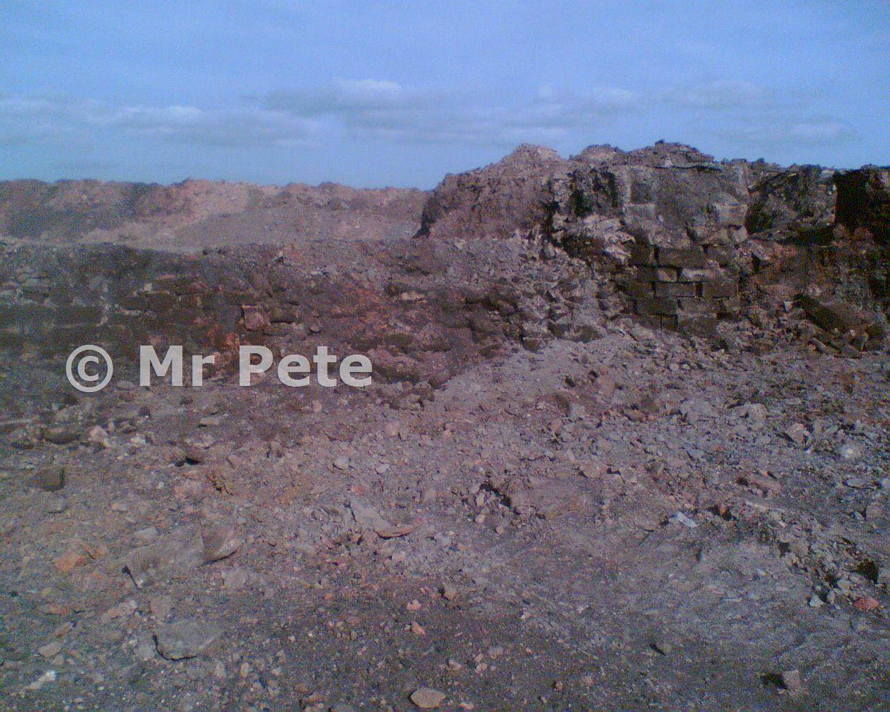 Unearthed, 2 vent shafts, with an adit leading off to the left with a further shallow shaft (open) in the middle of the adit 10m deep (centre of photo). The two vent shafts were probe drilled and found to be 50m back filled then void for 100m plus. Drilling was stopped at this point. Grid ref approx: NZ311720