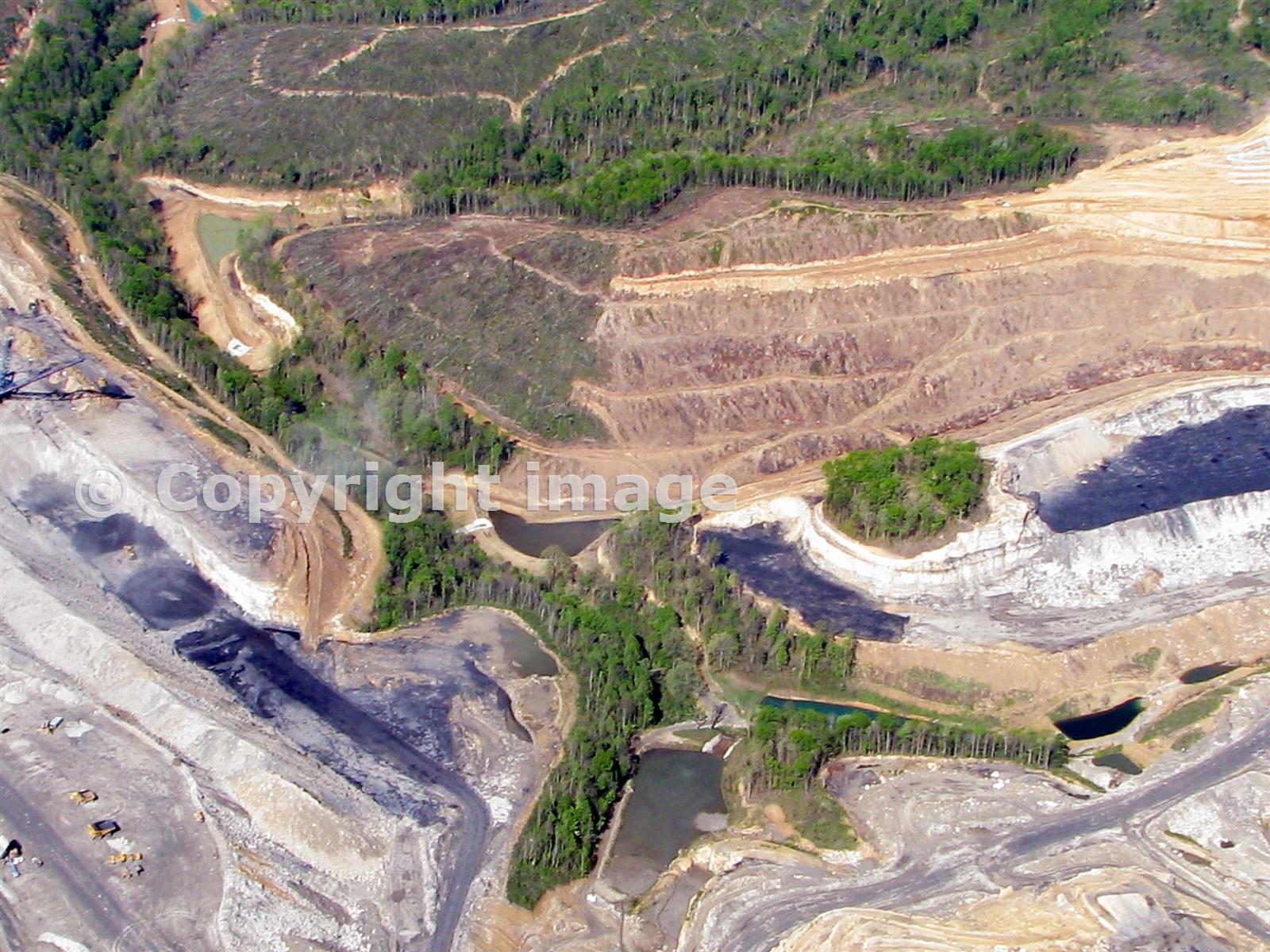 The circular patch of trees near the center-right of the photo is the Berry Branch Cemetery off Mud River Road in Lincoln County, WV. Photo courtesy Vivian Stockman / www.ohvec.org. Also if aerial image courtesy SouthWings.org