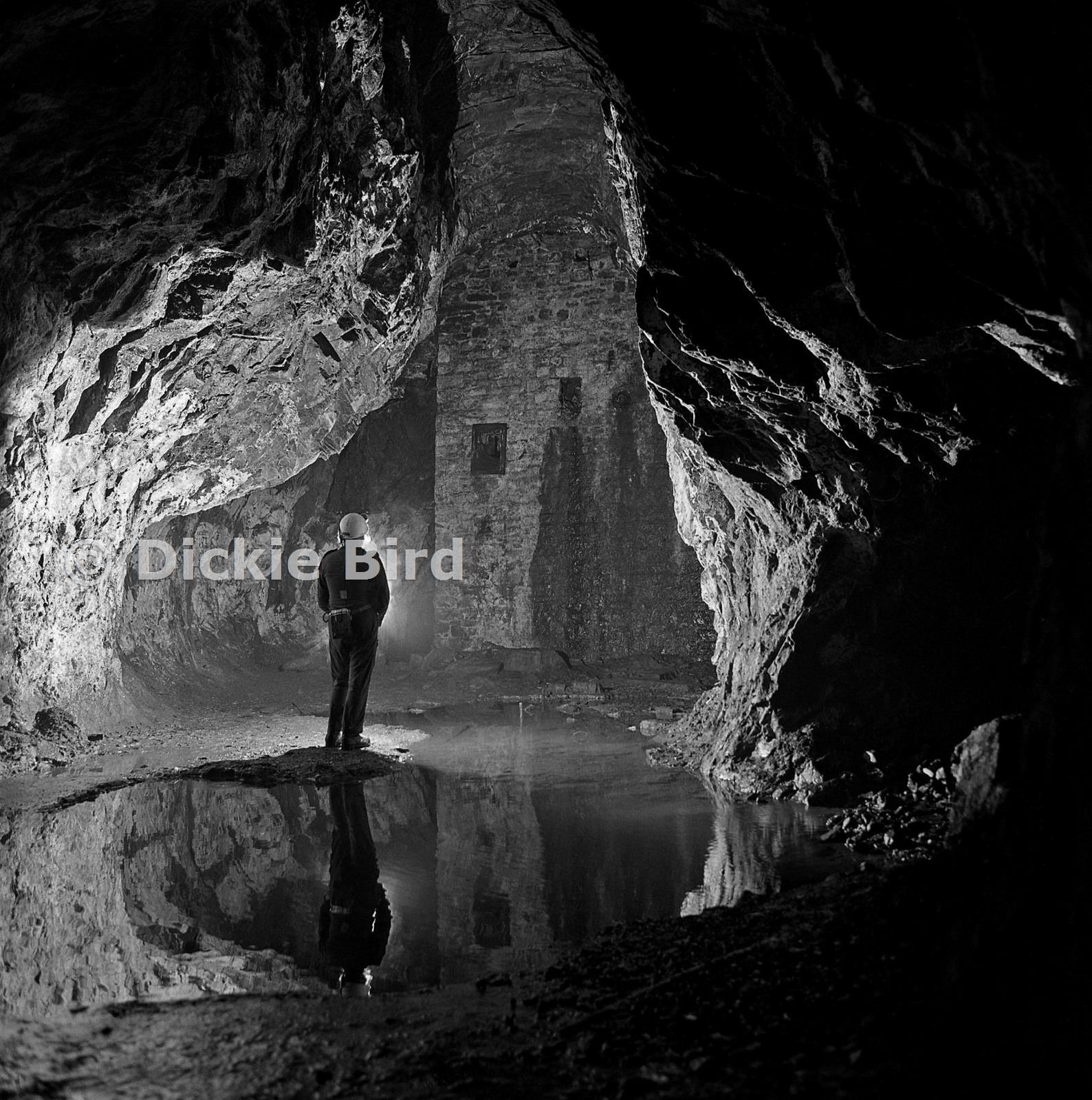 Despite appearances, the figure is not answering a call of nature! The 'steam' is, in fact, from the shellac-type coating on the old PF60 flash bulbs. The 960+ feet deep engine shaft here is behind the figure