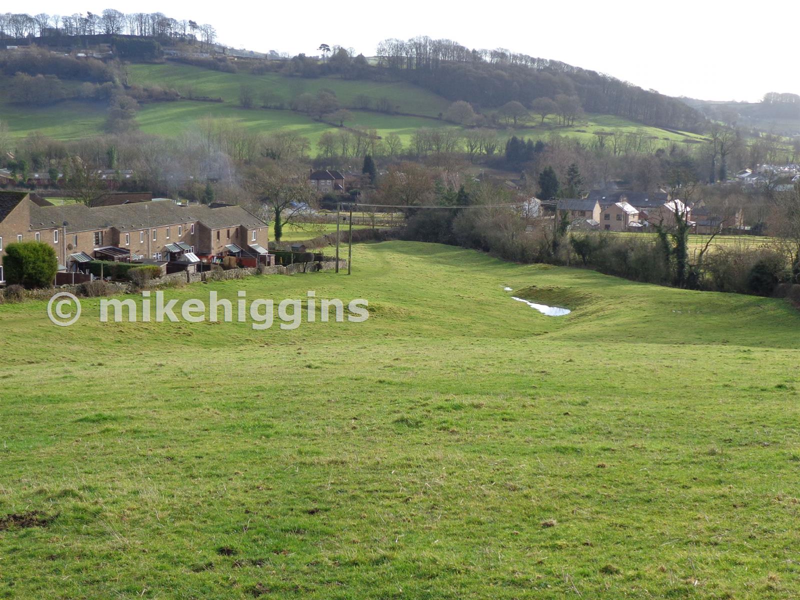 The slight remains of the upcast from the climbing shaft (centre of photo) looking towards the south east. The course of the sough is roughly from the bottom corner of the field.