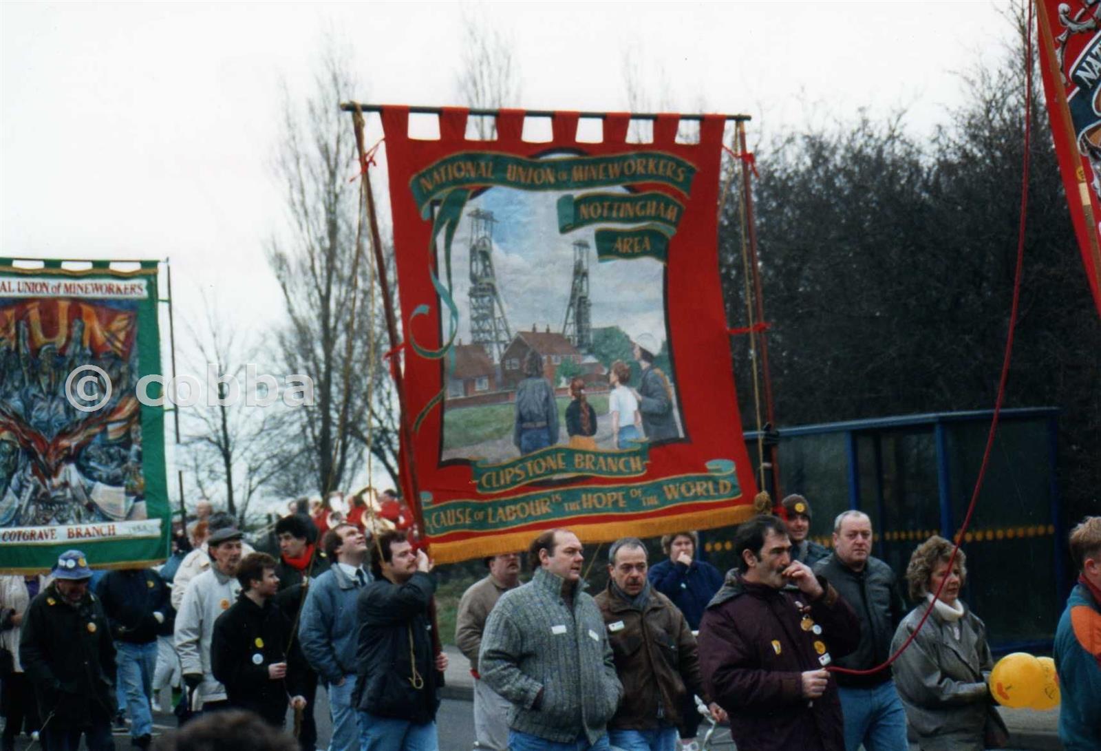 Clipstone NUM banner Grimethorpe march 13/2/93
