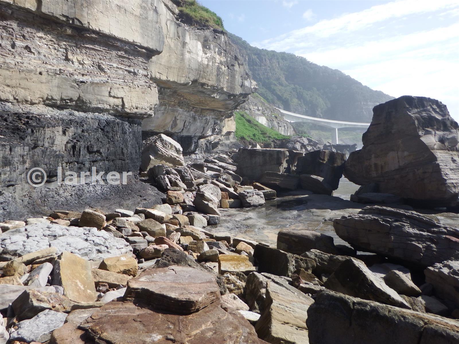 The coal seam as it outcrops in the sandstone cliffs about 500m south of the Jetty Mine