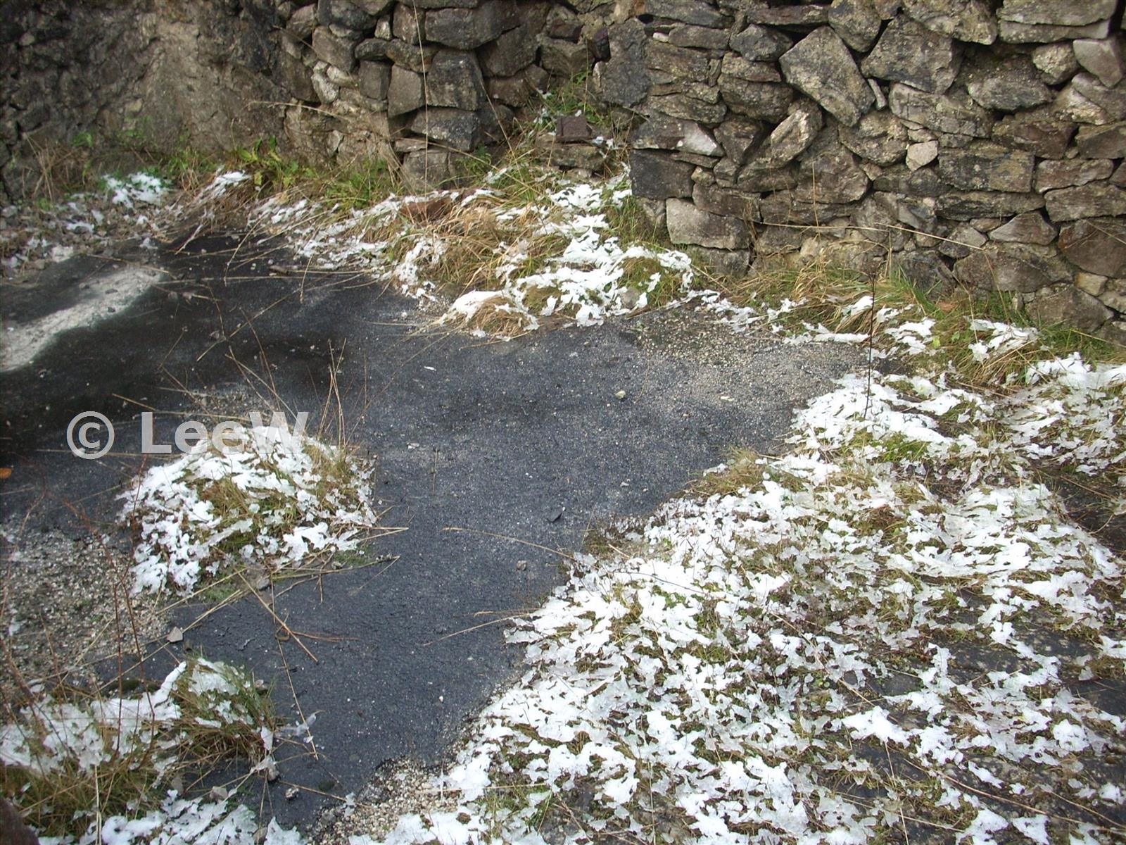 The floor of the coe comprises ashpalt to the left, slabs of limestone paving top right and smaller limestone cobbles bottom right