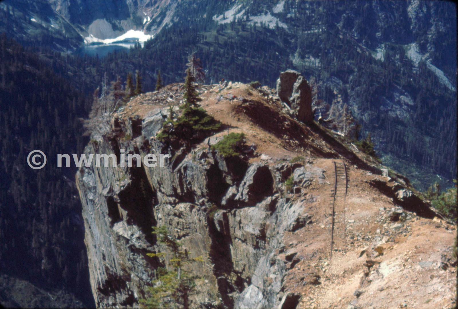 Cookhouse/bunkhouse, ore bunker and upper tram terminal were located on this buttress. Photo taken from above upper tunnel - September 1973