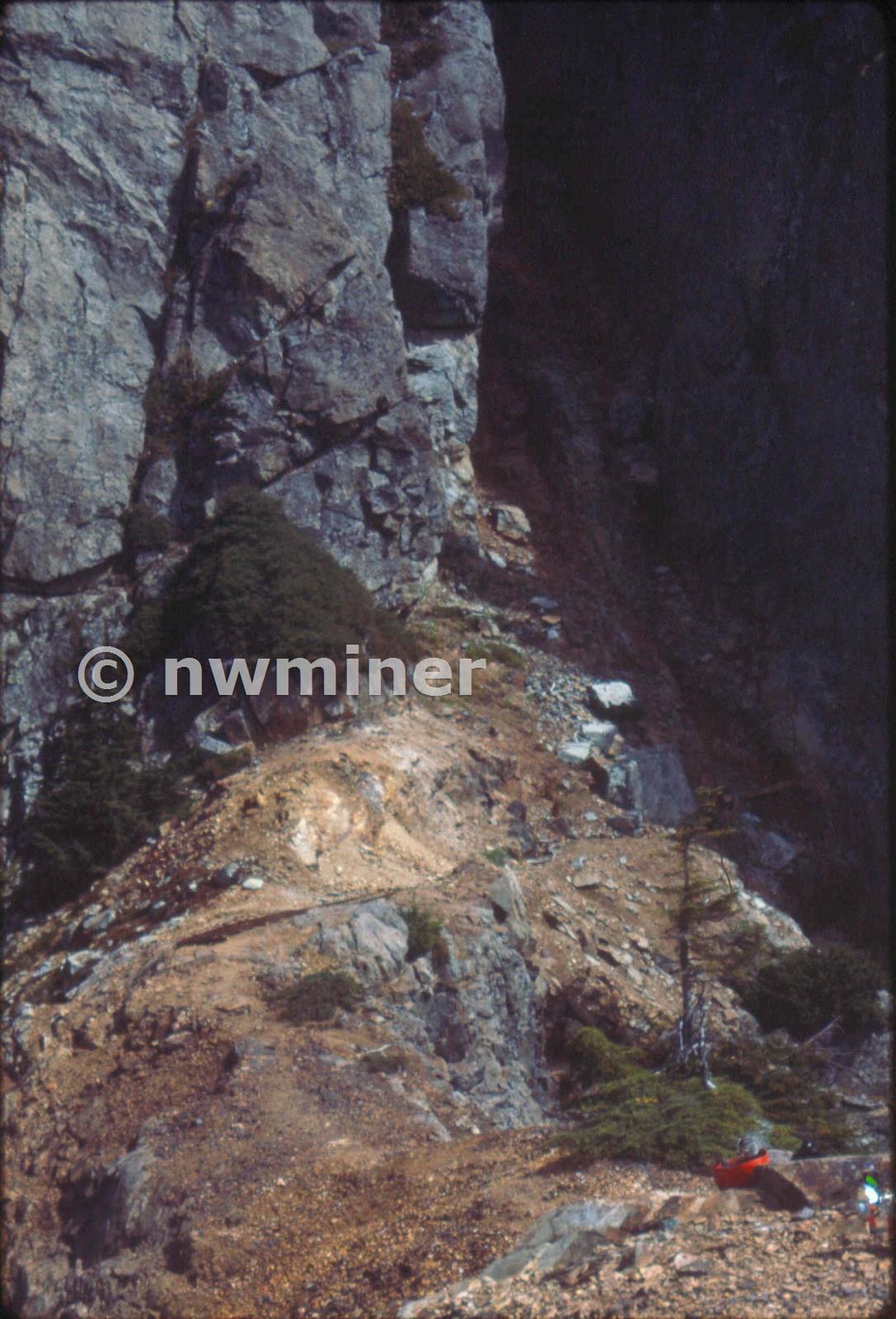 Looking toward upper tunnel from site of cookhouse/bunkhouse. Photo September 1973