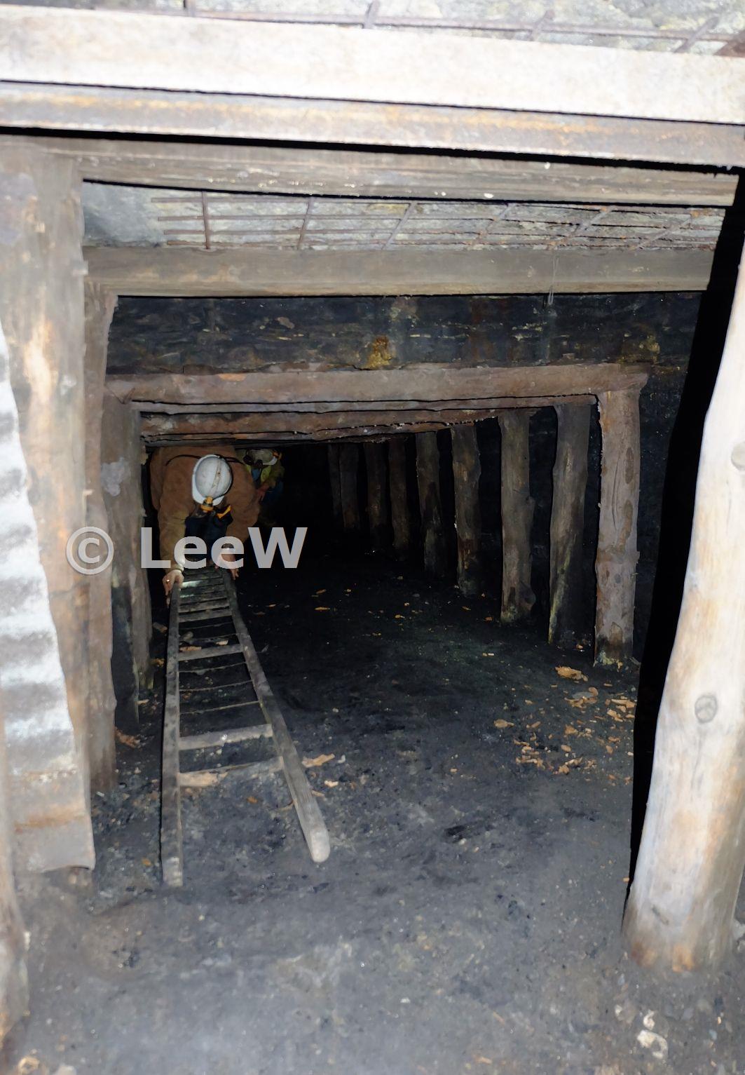 The slope of the seam is 1 in 1.9 and the ladder has a few rungs missing