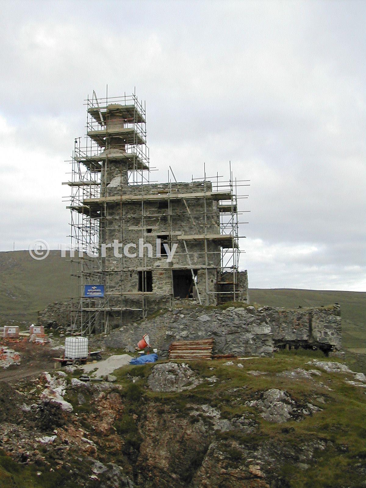 The Mountain mine man engine house was conserved by the Mining Heritage Trust of Ireland during three phases from Ocr. 2002 to May 2004. This photograph shows 2nd phase of works in 2003