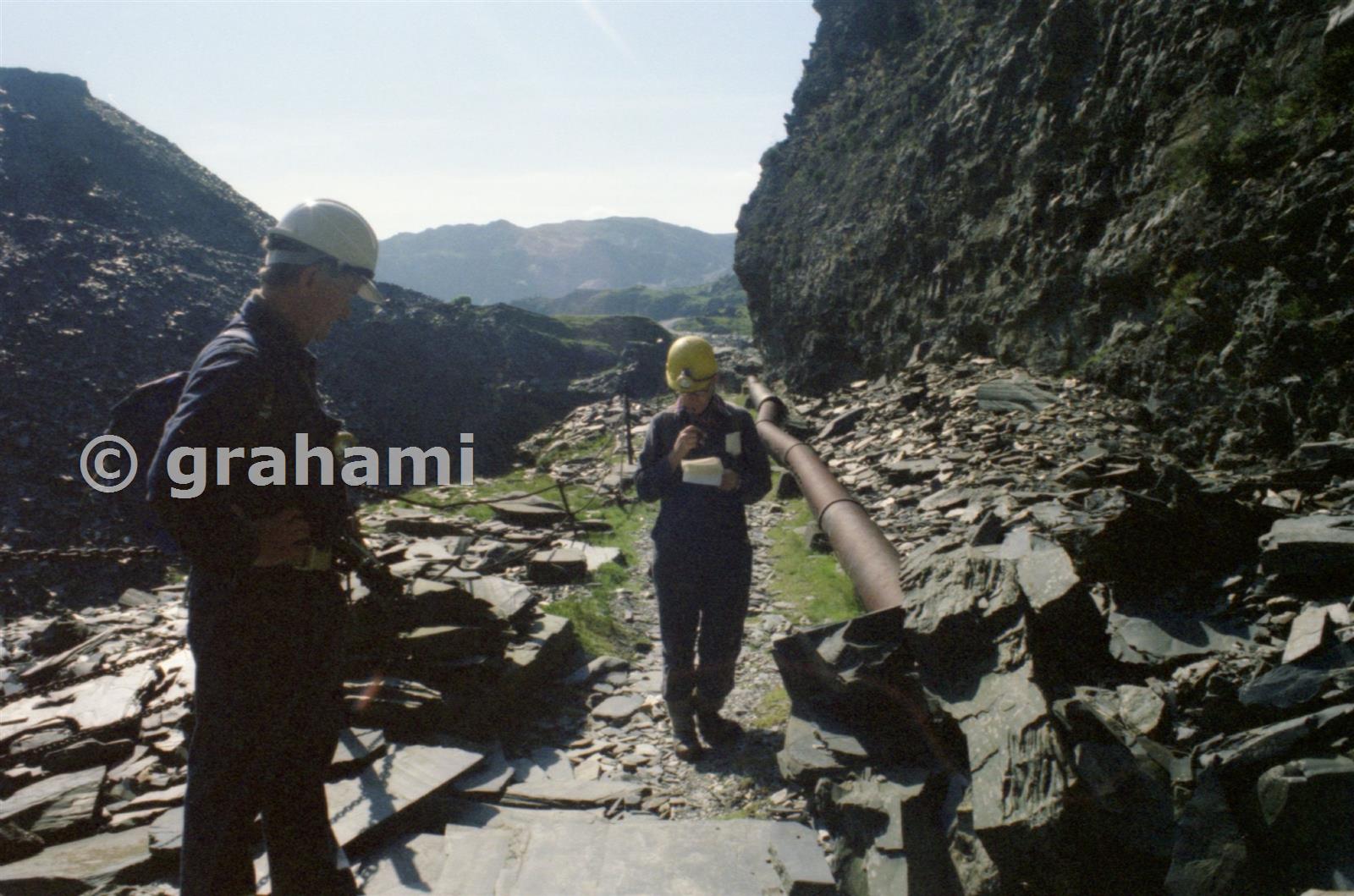 Looking west along the "ledge" with the drainage pipe in view. Just to the right was a short level into the Votty workings. Cookes Level, although usually associated with Maenofferen, was originally part of the Votty workings and gave access to a couple of their chambers.