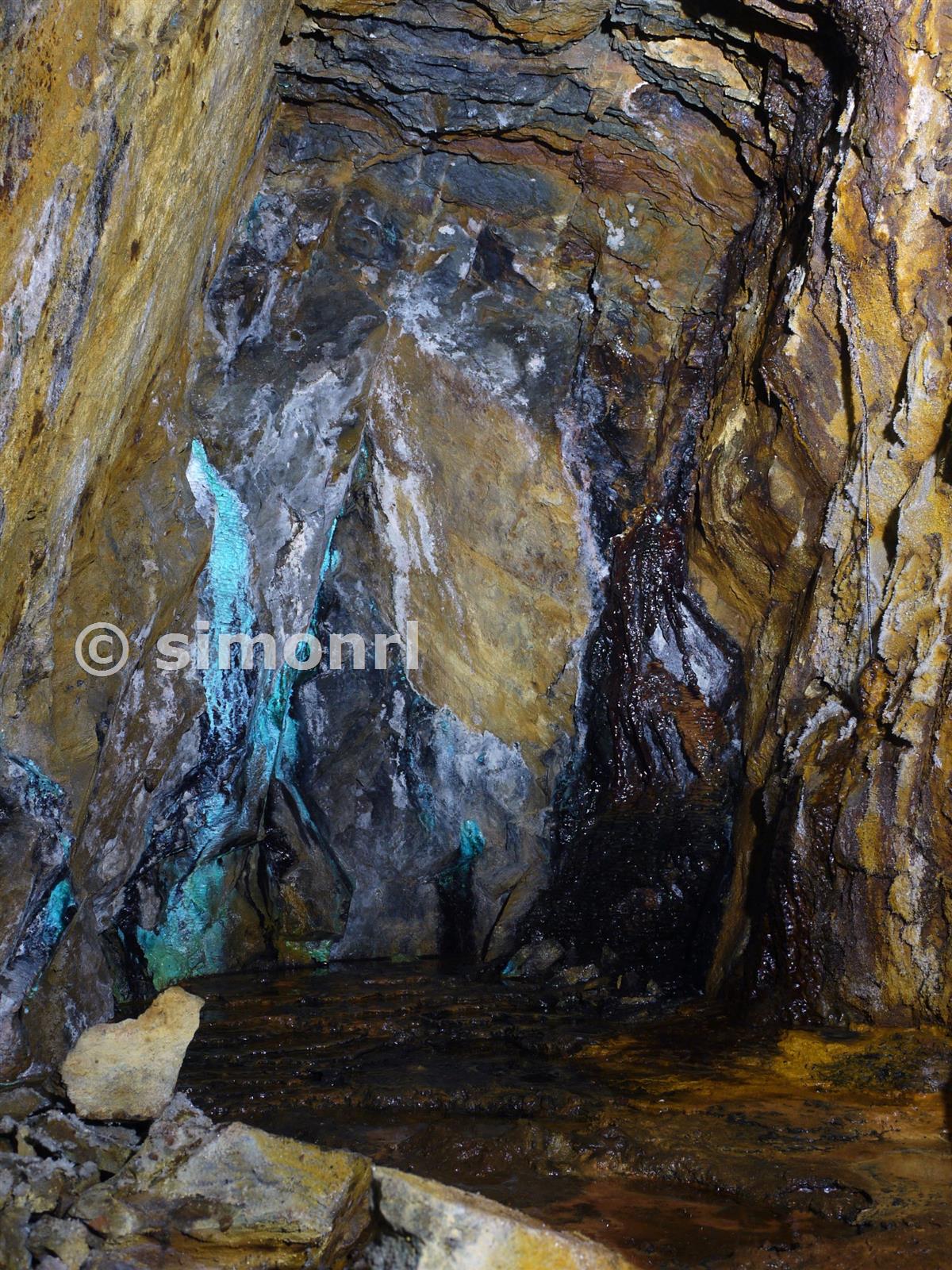 Copper staining, western lode workings Pantywrach Copper Mine September 2012
