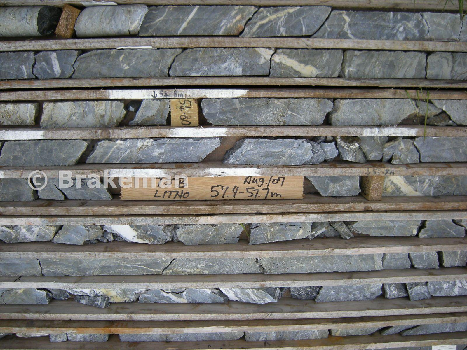 Close up of core samples from white rock area, dated aug 07. may 2008