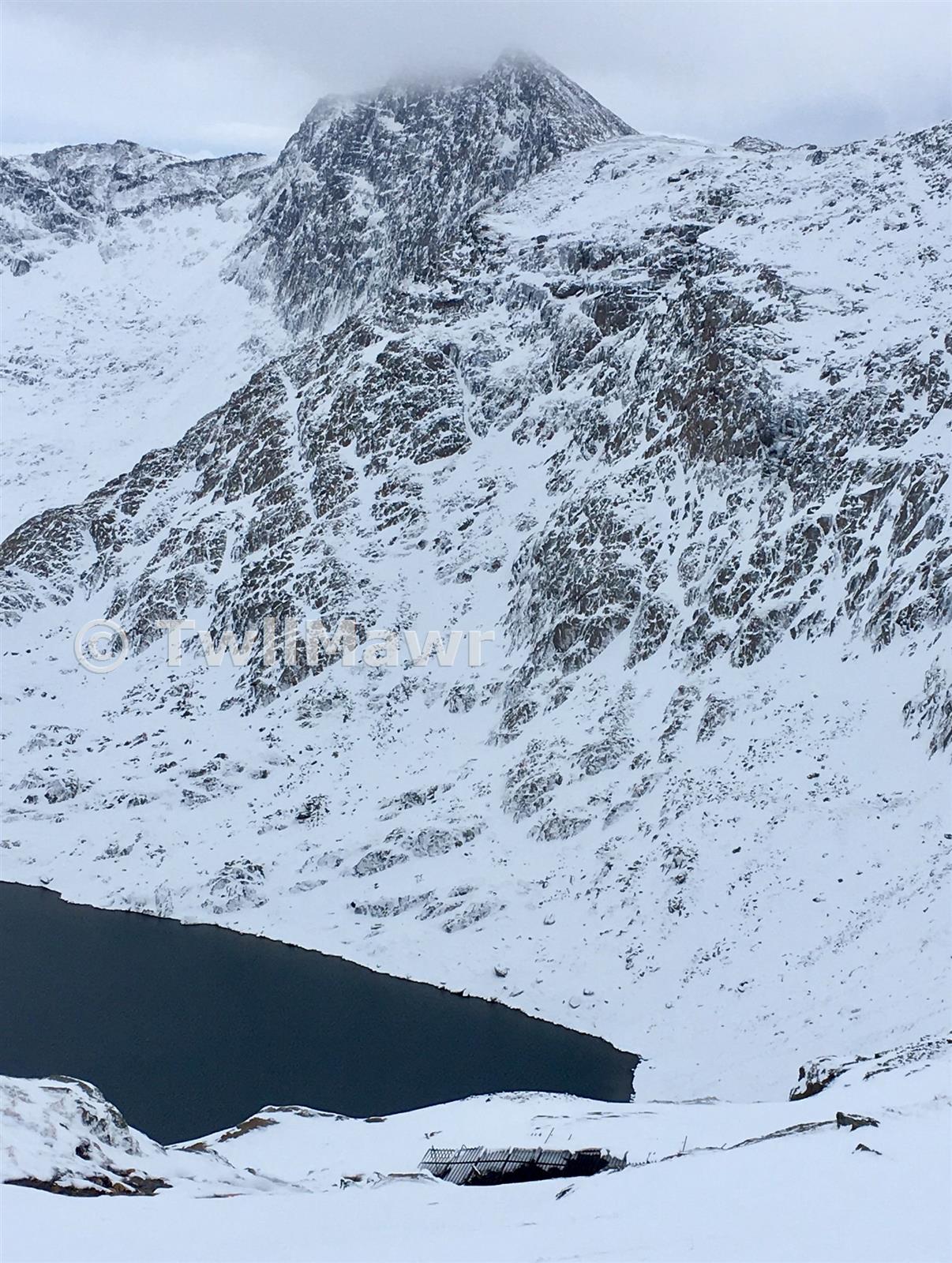 Bottom part of photo... Covered shaft just below the PYG track at about 750mts. Grid ref around SH 613 547. Is this the highest part of the workings? Apologies for photo... too cold/windy to hang around.