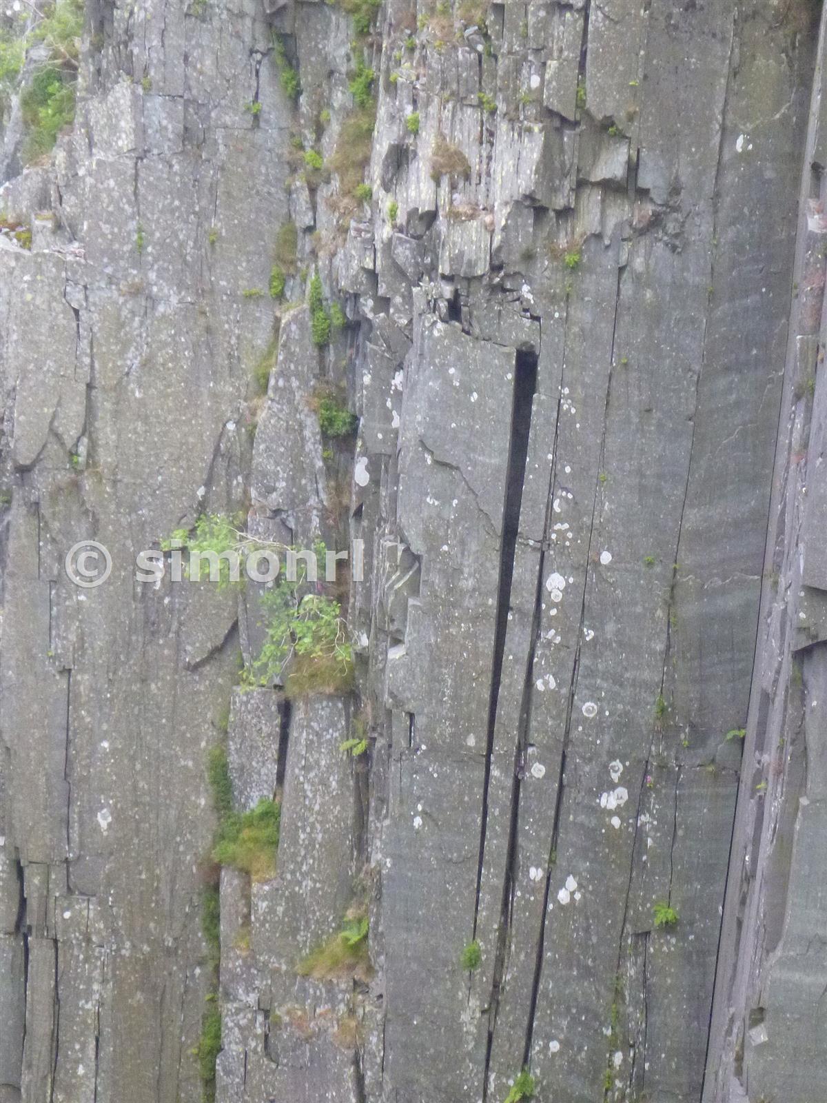 Close up of crack in Western wall of Lost World Dinorwic Slate Quarry June 2014