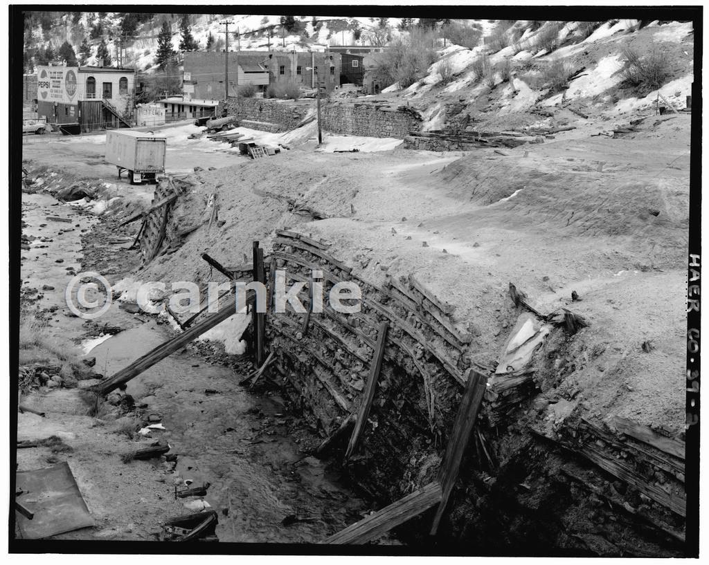 VIEW OF SOUTH CRIB WALL AND TAILINGS Courtesy Library of Congress, Prints & Photographs Division, HAER, Reproduction number HAER COLO,24-BHAWK,1-2