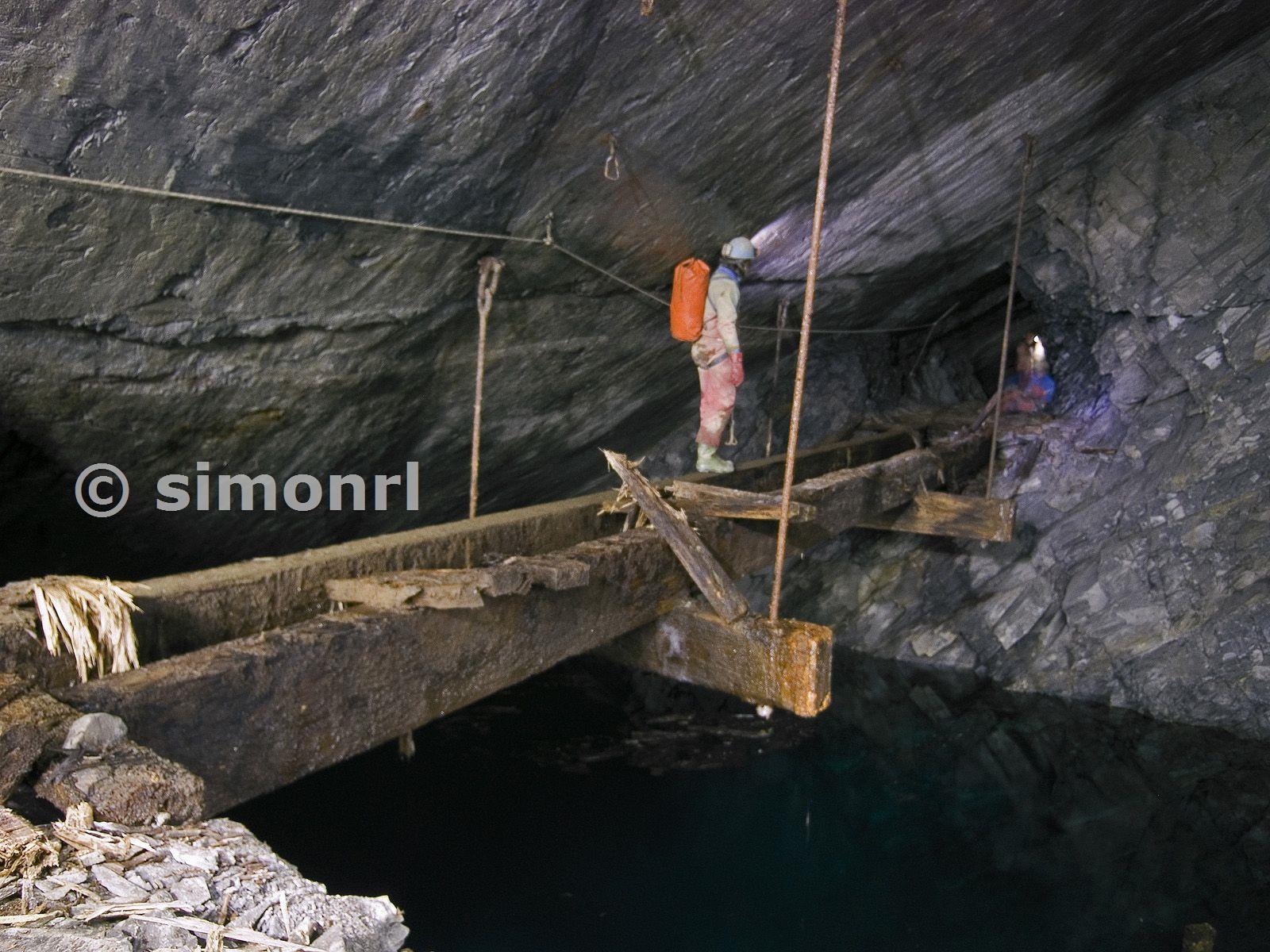 Crossing the bridge in A10E Croesor Slate Mine 28/02/2010