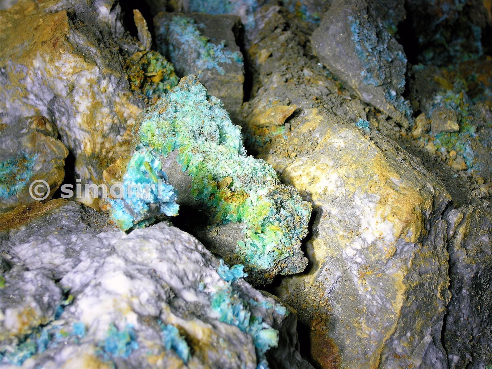 Crystal formations of xx on the xx fathom level at Parys Mountain Copper Mine.