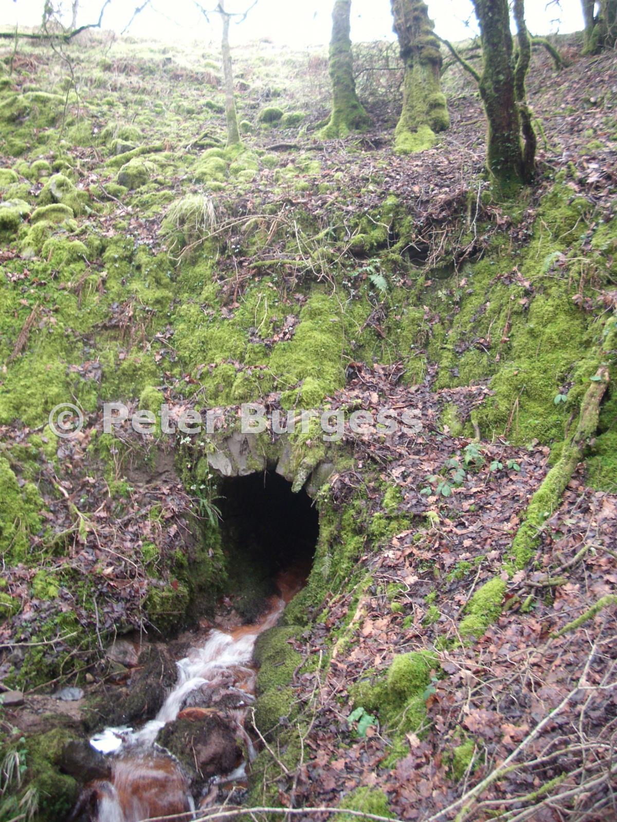 A stone-lined culvert under an embankment at Nant-y-ffin between Penwyllt and Coelbren.