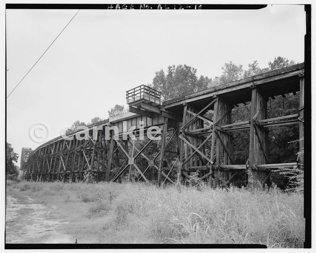 EXTERIOR VIEW WITH CURVED APPROACH TRESTLE ON NORTHPORT SIDE. Library of Congress, Prints & Photographs Division, HAER Reproduction number HAER ALA,63-TUSLO,27-10
