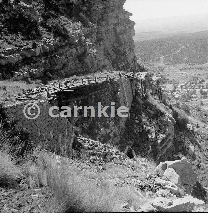 LOOKING SOUTHEAST. AS THE TRAM ENTERED THE GRAVITY TRAM LINE, IT CROSSED THIS CUT-STONE BRIDGE AND WAS CONTROLLED BY THE SWITCHING PLATFORM IN THE BACKGROUND. Courtesy Library of Congress, Prints & Photographs Division, HAER, Reproduction number HAER UTAH,4-KENW,1-31