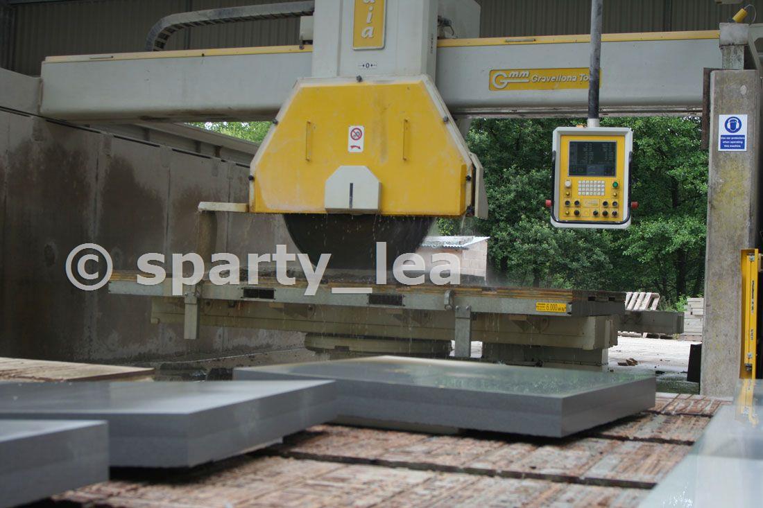 Slabs cut from the large sandstone blocks are cut to whatever size required.