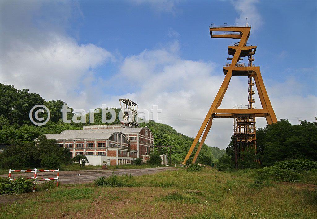 Colliery overview showing the listed concrete headframe on the left and the new skip winding frame to the right.