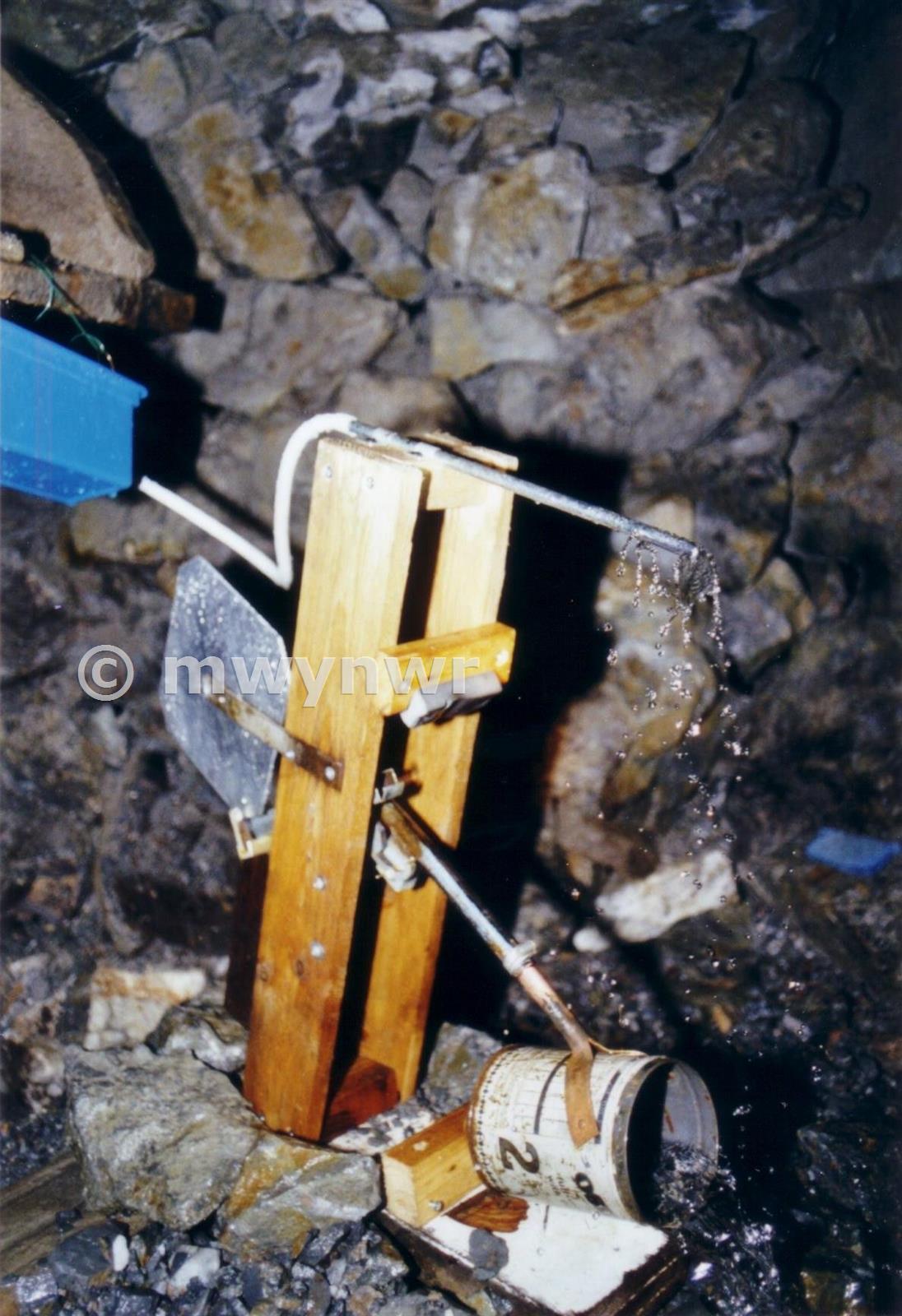 Close up, showing the collecting tin in the lowered position