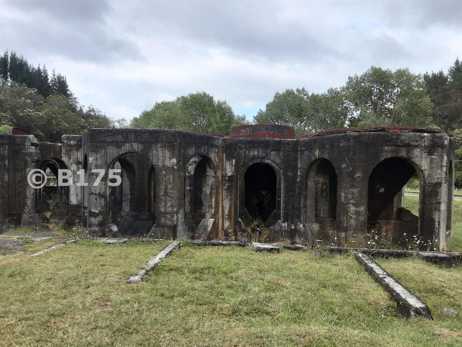 The concrete bases of the cyanide plant. The tanks were 15m high and 4m dia