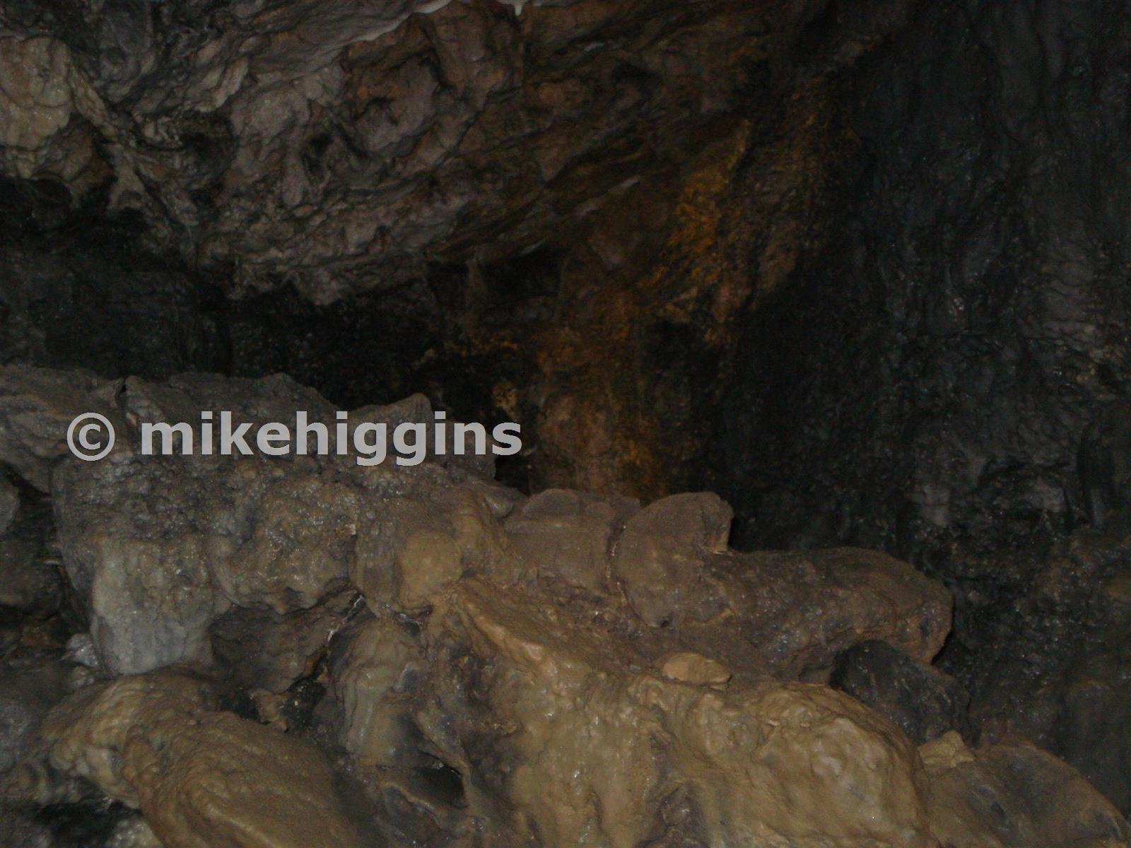 Small drystone dam under a tiny aven in the passage south wall, probably to gather water for ore washing