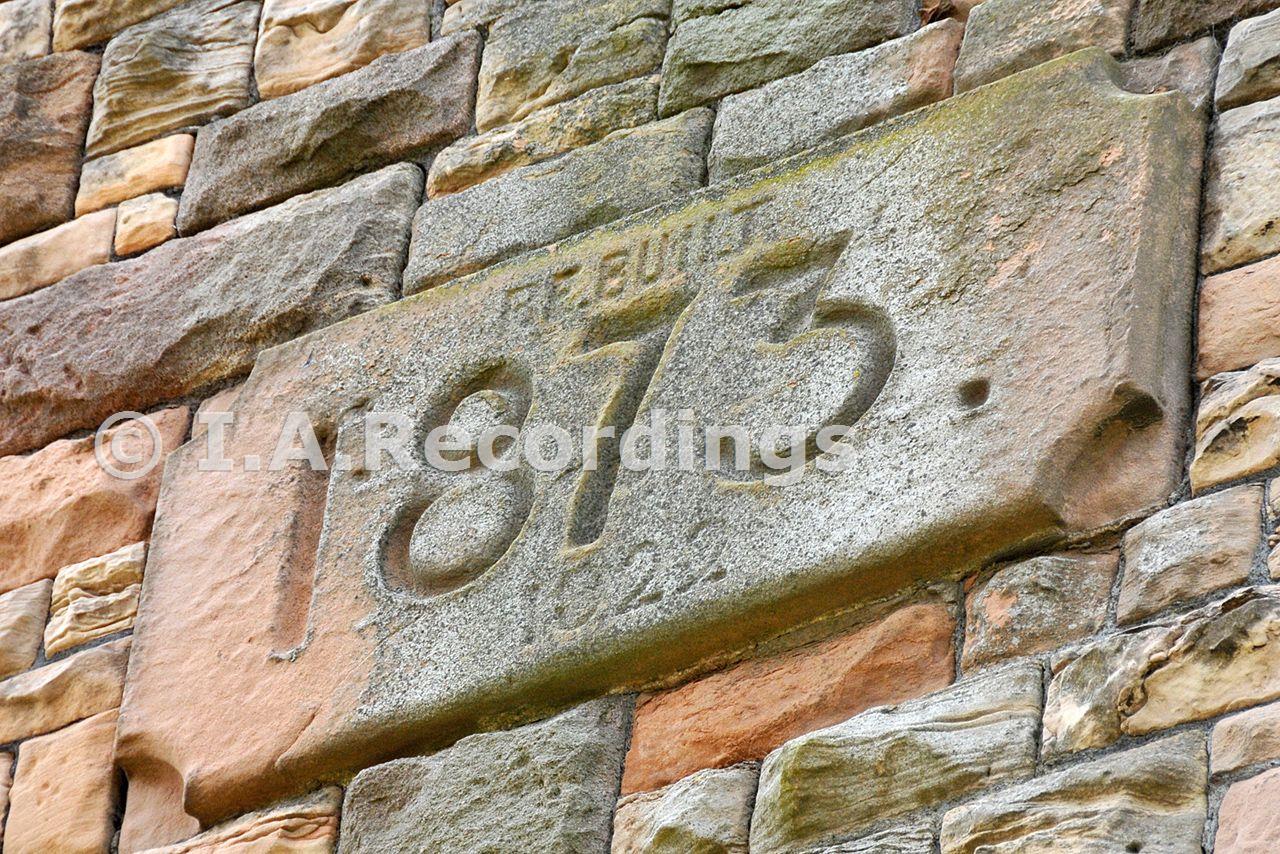 Detail of the South engine house East wing datestone. Taken during the NAMHO 2009 Conference visit to Pleasley Colliery, more details on their web site www.pleasley-colliery.org.uk