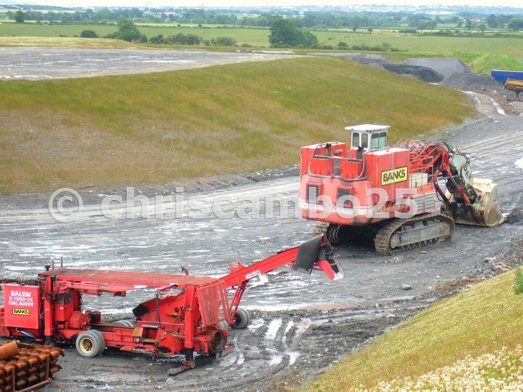 RH120C excavator and coal auger in foreground, the auger is used to extract coal from seams exposed along the highwall during mining .drawing coal out from benaeth the earth in a similar fashion to underground coal cutters.