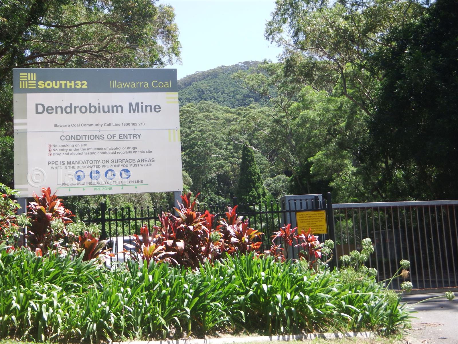 The road entrance to the mine complex.