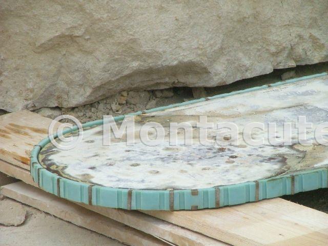 An under cutting or horizontal saw. A polypropylene band with diamond loaded inserts.