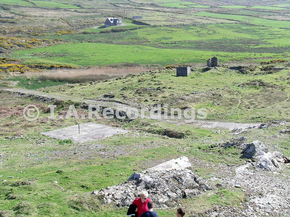 Site of Dhurode Copper Mine. View across the site with capped shaft and remains of the dressing floor (foreground) and possible miners baracks or housing in middle background.