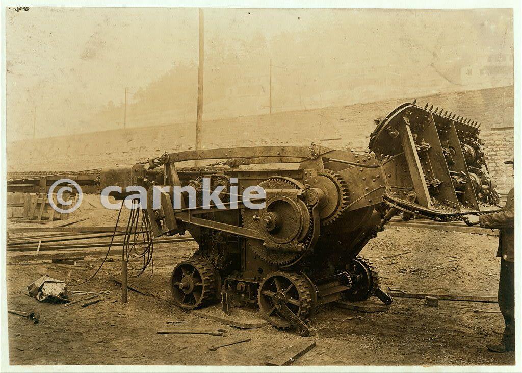 Machine used in Gary W. Va. mine that digs the coal and loads it on the car. With it 3 men can do the work of 50 in the old way. Yet they use boys to drive and trap.
